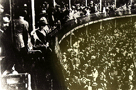 SÁNCHEZ MEJÍAS Y MARCIAL LALANDADurante los siete días que duró la Asamblea de la Prensa, los participantes en la misma tuvieron ocasión de asistir a numerosos actos sociales. Banquetes, excursiones, conciertos, funciones teatrales, recepciones oficiales y una corrida de toros organizada especialmente para la ocasión, donde Ignacio Sánchez Mejías daba la alternativa a Gitanillo y compartía cartel con otra de las figuras de la época: Marcial Lalanda. Los periódicos cántabros y nacionales recogieron con profusión las actividades desarrolladas a lo largo de esa semana en que la Asociación de la Prensa de Cantabria ejerció de anfitriona de tan importante evento. El 13 de agosto quedaron clausuradas las jornadas con la presencia del ministro de la Gobernación. En dicho acto intervinieron el presidente de la FAPE, Rufino Blanco, y el vicepresidente, Eugenio D'Ors, quien recibió una calurosa ovación a su discurso que tituló "La Función Internacional de la Prensa". D'Ors defendió la idea de que "para que los periódicos triunfen de las influencias políticas, necesitan un apoyo que radique fuera de la localidad influida". |