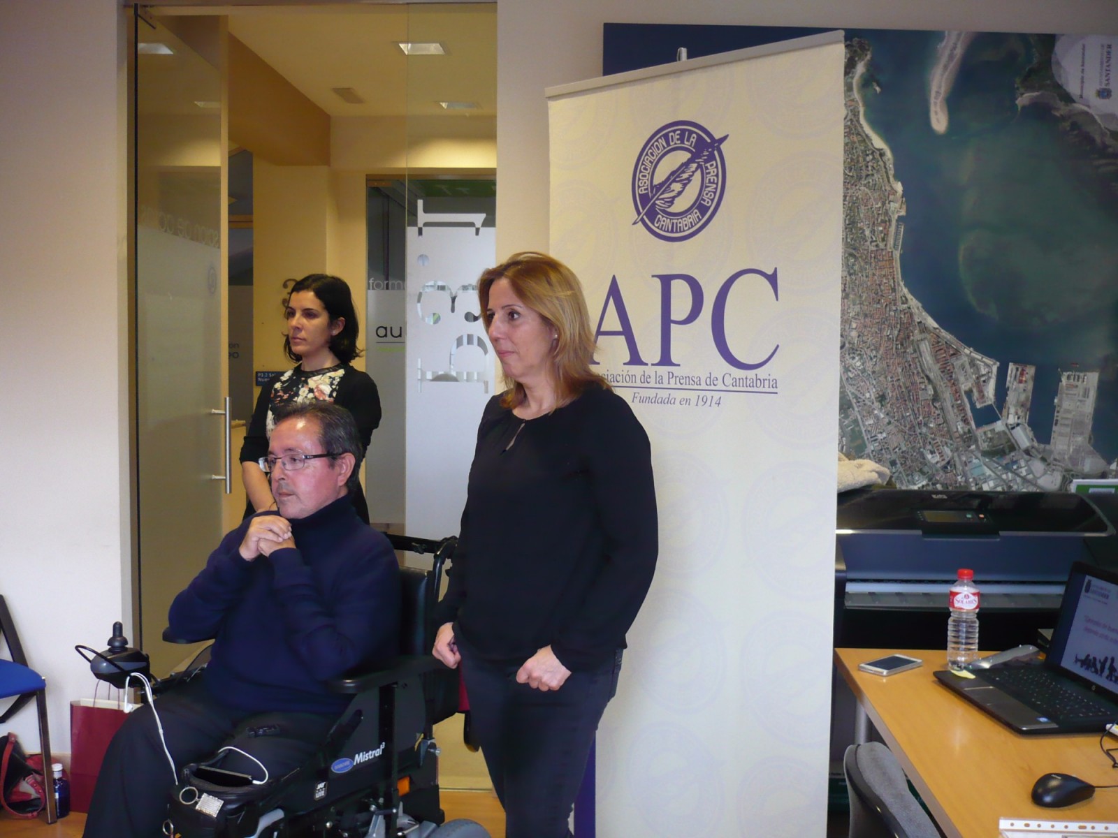 Acompañaron al Concejal de Autonomía Persona,l Roberto del Pozo, y a la Presidenta de la Asociación de la Prensa de Cantabria, Dolores Gallardo,los representantes de diversas asociaciones. Entre otros, acudieron al acto Irene Santervás Gutierrez e Isabel Martinez de la Fuente ,presidenta y secretaria, respectivamente, de la Asociación de Personas con Afasia, Patricia Martínez, tecnico de autonomia personal, e Ignacio Fernández Allende y Pablo Montoya, presidente y coordinador general de la Asociación Cántabra Pro Salud Mental ASCASAM.