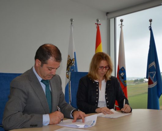 La presidenta de la Asociación de la Prensa de Cantabria, Dolores Gallardo, y el rector de Universidad Europea del Atlántico, Rubén Calderón, han firmado un convenio que permitirá a ambas instituciones colaborar en proyectos de interés común.