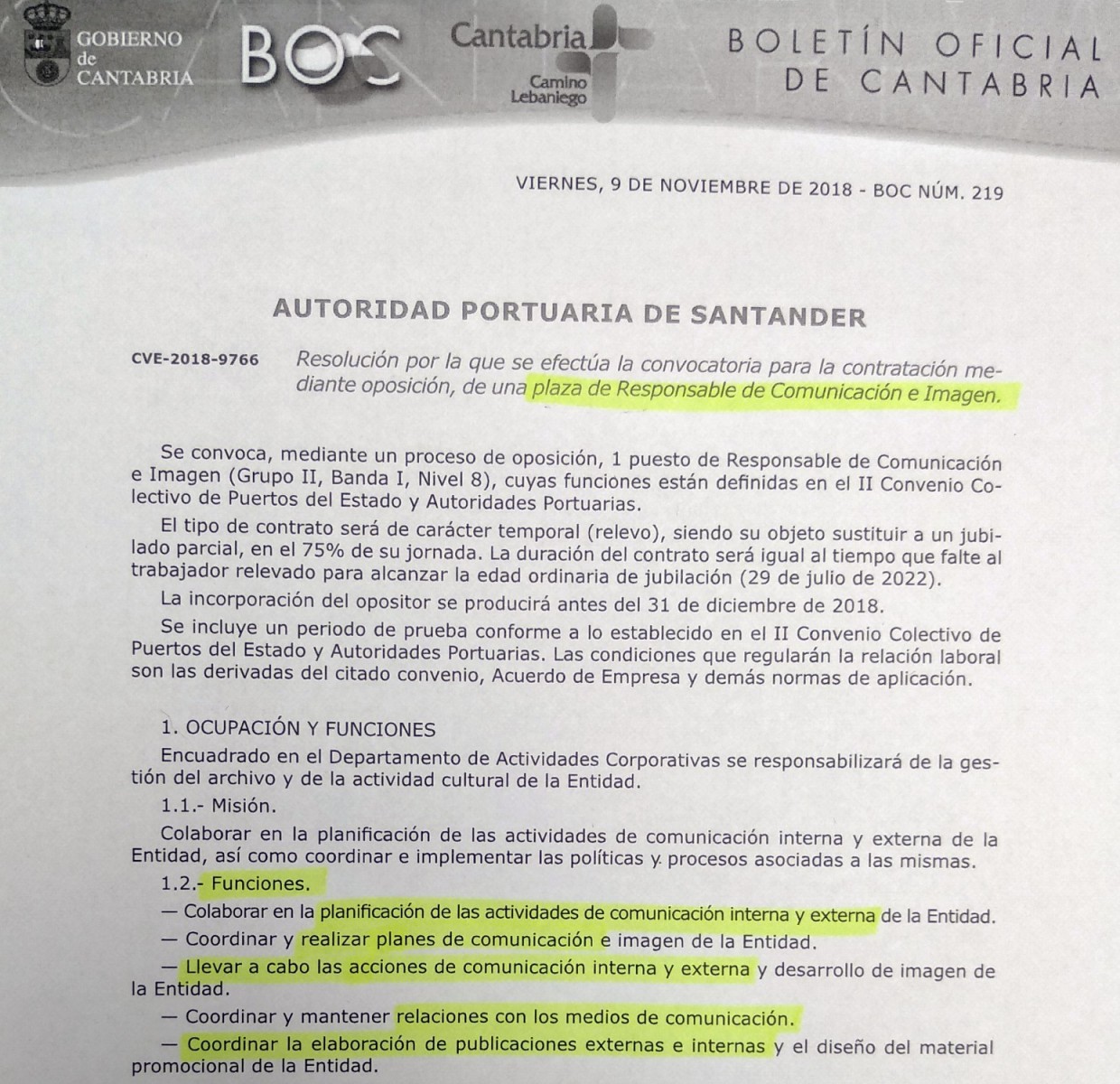 La Asociación de Periodistas de Cantabria (APC) exige a la Autoridad Portuaria de Santander la inmediata paralización, para su revisión, de la convocatoria presentada para la contratación de un Responsable de Comunicación e Imagen, en la que se excluye a los titulados de Periodismo o Ciencias de la Información.