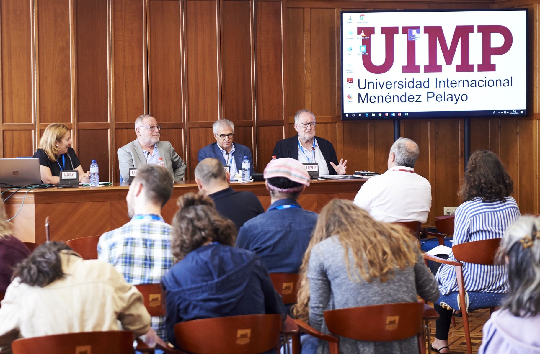 Santander, 3 de julio de 2019-. El filósofo Fernando Savater; el presidente de la Federación de Asociaciones de Periodistas de España (FAPE), Nemesio Rodríguez; el periodista Fernando González Urbaneja; y la presidenta de la Asociación de Periodistas de Cantabria (APC), Dolores Gallardo, han participado esta tarde en la mesa redonda La ética en la era digital: qué hacer frente a las noticias falsas, incluida en el encuentro 'Periodismo de verdad', que se celebrará hasta el viernes en la Universidad Internacional Menéndez Pelayo (UIMP).