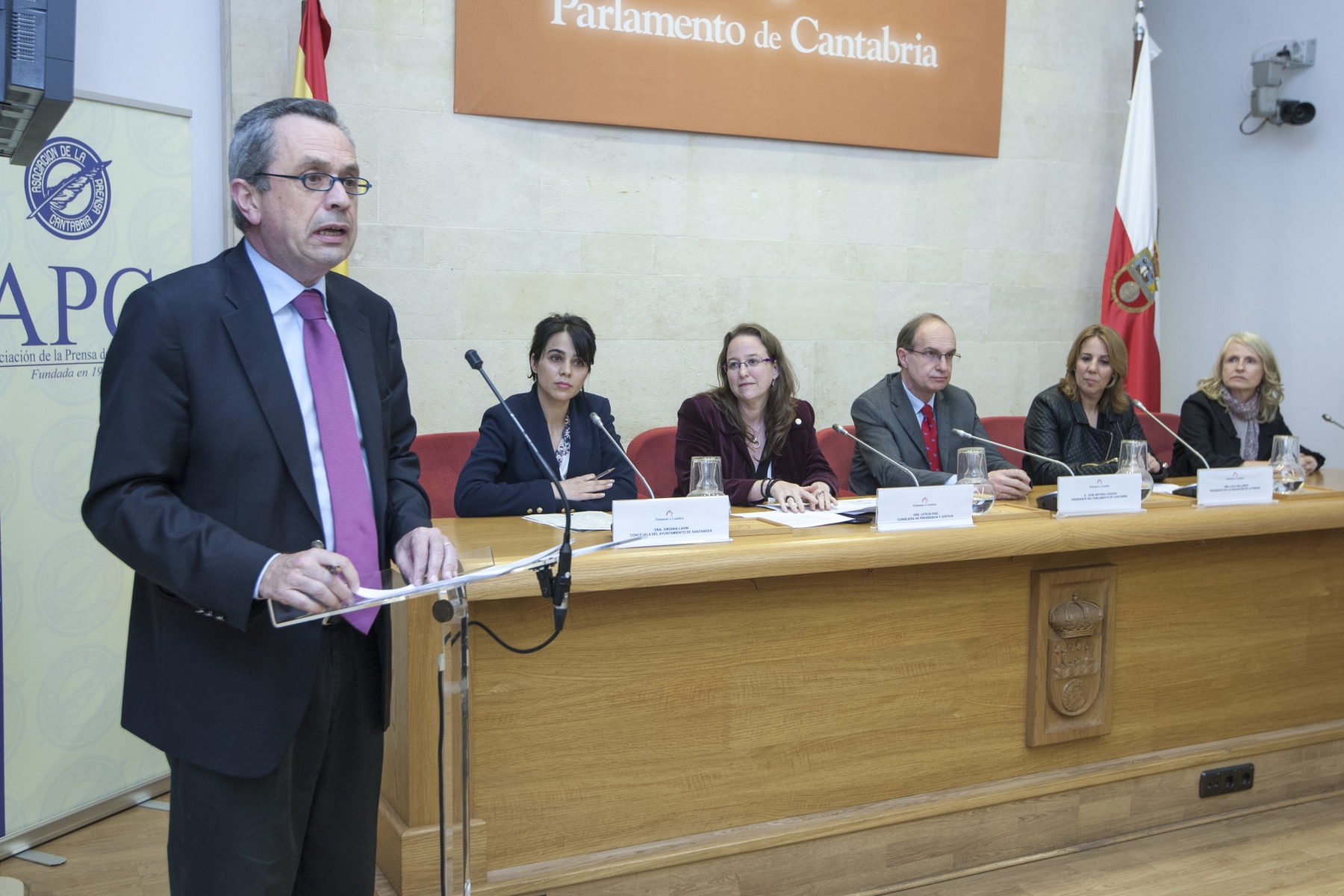 La Asociación de la Prensa de Cantabria (APC) entregó el jueves 29 de mayo los premios del concurso de periodismo escolar ‘Te veo, me ves’, organizado por su proyecto educativo InterAulas con motivo de su centenario para conocer la visión de los jóvenes sobre los medios de comunicación. El acto se celebró en el Parlamento de Cantabria y contó con la presencia del presidente del Gobierno de Cantabria, Ignacio Diego; la consejera de Presidencia y Justicia, Leticia Díaz; el presidente de la Cámara, José Antonio Cagigas; la directora general de Universidades e Investigación, Marta Guijarro; la concejala de Educación del Ayuntamiento de Santander, Virginia Lavín; la presidenta de la APC, Dolores Gallardo.