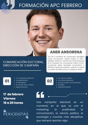 Es por ello que la APC ha organizado este taller sobre comunicación electoral y dirección de campaña que se desarrollará el viernes, 17 de febrero, de 16.00 a 20.00 horas en el Hotel Santemar.
