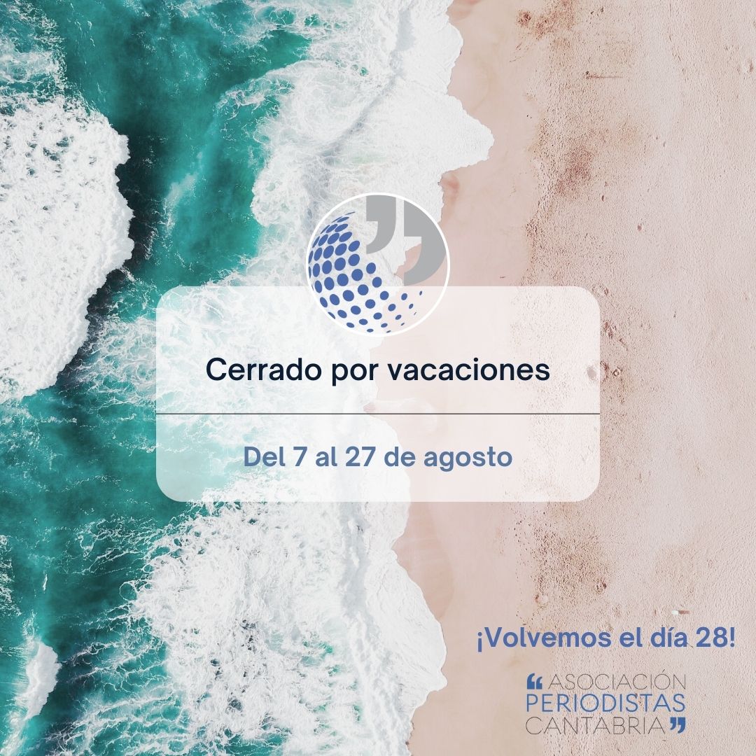 La sede de la Asociación de Periodistas de Cantabria permanecerá cerrada por vacaciones del 7 al 27 de agosto. A partir del lunes día 28 se retomará la actividad habitual.