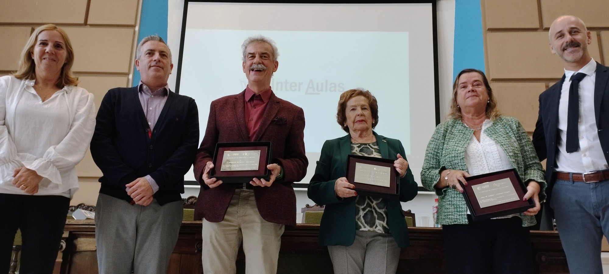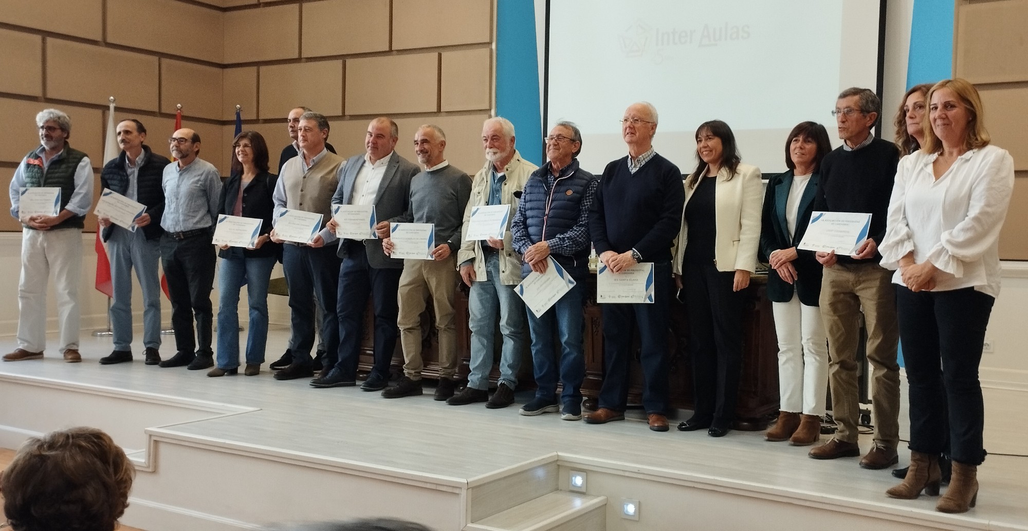 Durante la jornada se reconoció el trabajo de los impulsores y participantes en los primeros pasos de InterAulas. Así, Sofía Juaristi y María Ángeles Samperio, exconsejera de Educación y expresidenta de la APC, respectivamente, y Armando Rodríguez Arconada, creador de InterAulas y periodista del MEC esos años, recibieron unas placas conmemorativas por su papel en esta iniciativa pionera.