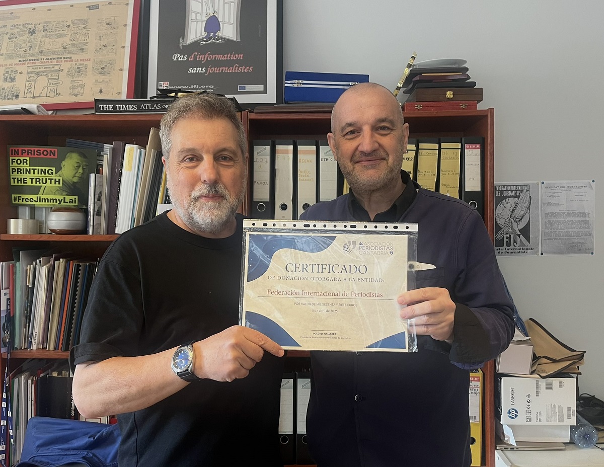 La APC ha realizado una donación a la Secretaría General de la Federación Internacional de Periodistas (FIP) con sede en Bruselas. El Secretario General de la Federación, Anthony Bellanger, agradeció la aportación de la APC y afirmó que el montante irá destinado a los Fondos de Solidaridad internacional y al patrocinio del Congreso del Centenario de la FIP que se celebrará en París en Mayo de 2026. La APC figurará con su logo como patrocinador de la FIP.