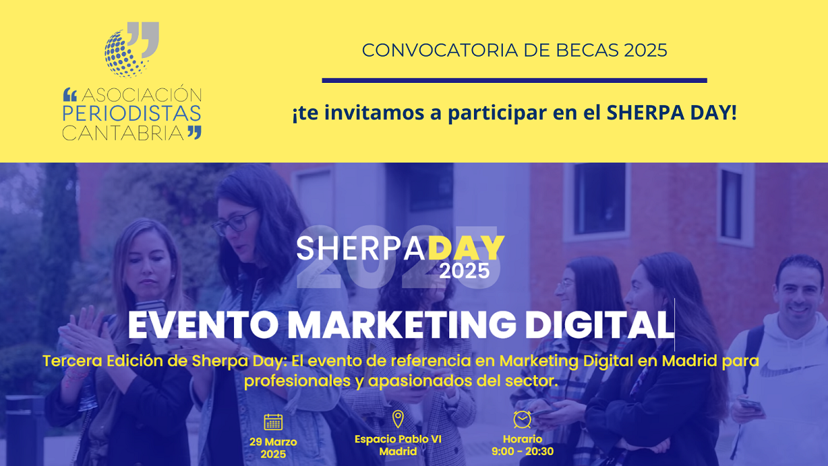 La Asociación de Periodistas de Cantabria convoca entre sus asociados 10 becas para participar en la tercera edición del Sherpa Day, el evento de referencia en marketing digital para profesionales y apasionados del sector que se celebrará el 29 de marzo en Madrid.